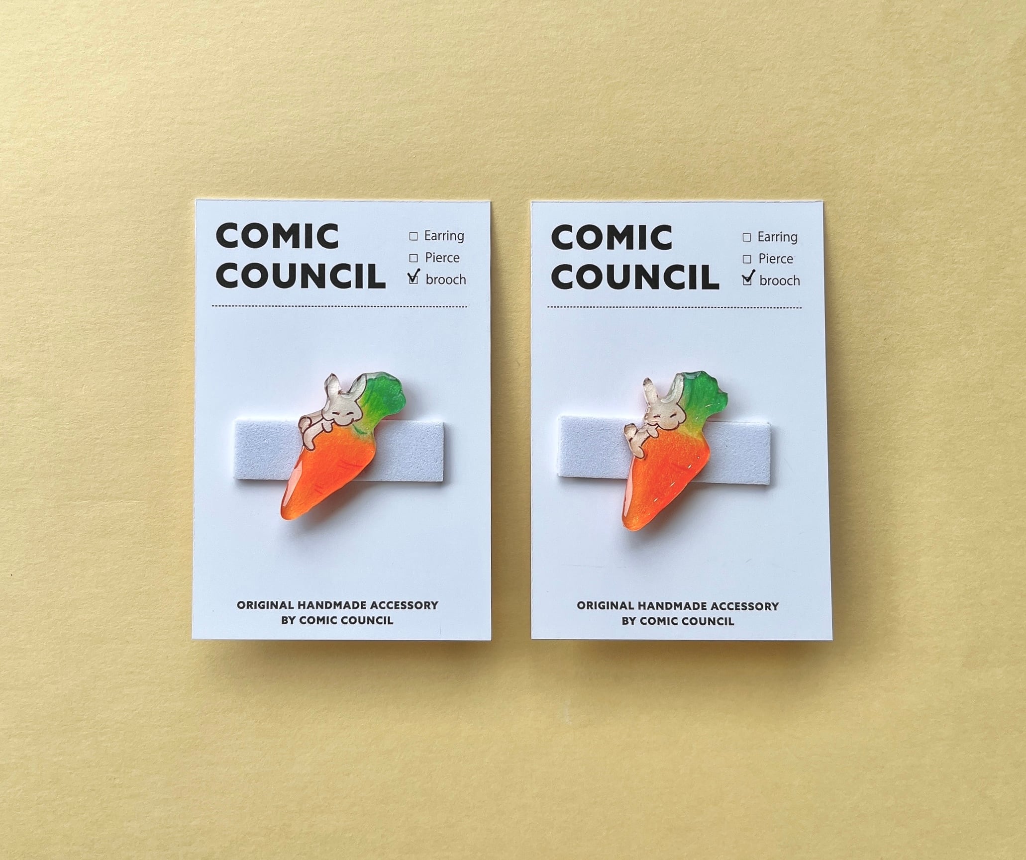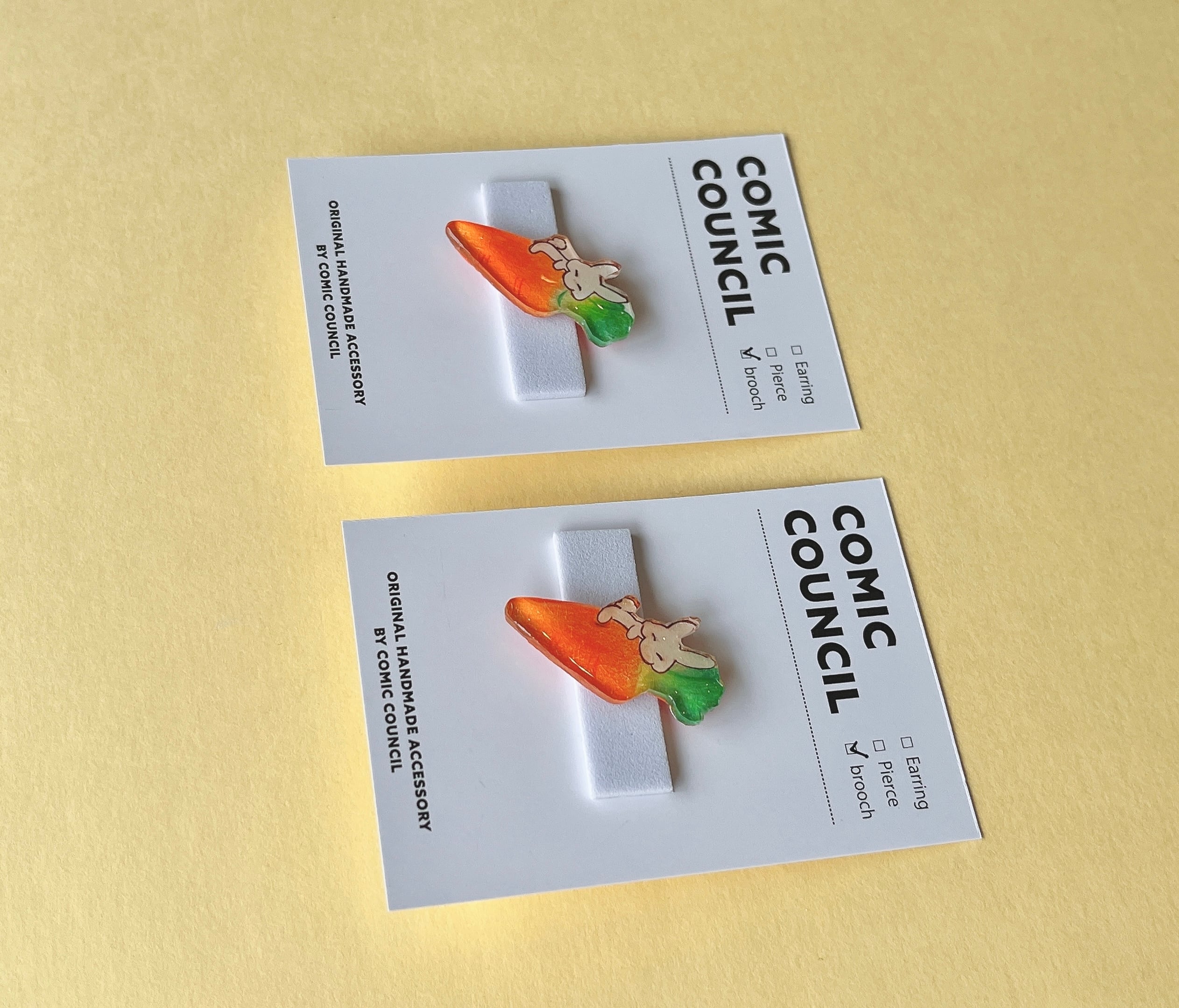 コミックカウンシル作家 眠々の初グッズ、「巨大にんじんとうさぎ」ピンズバッジができました☆