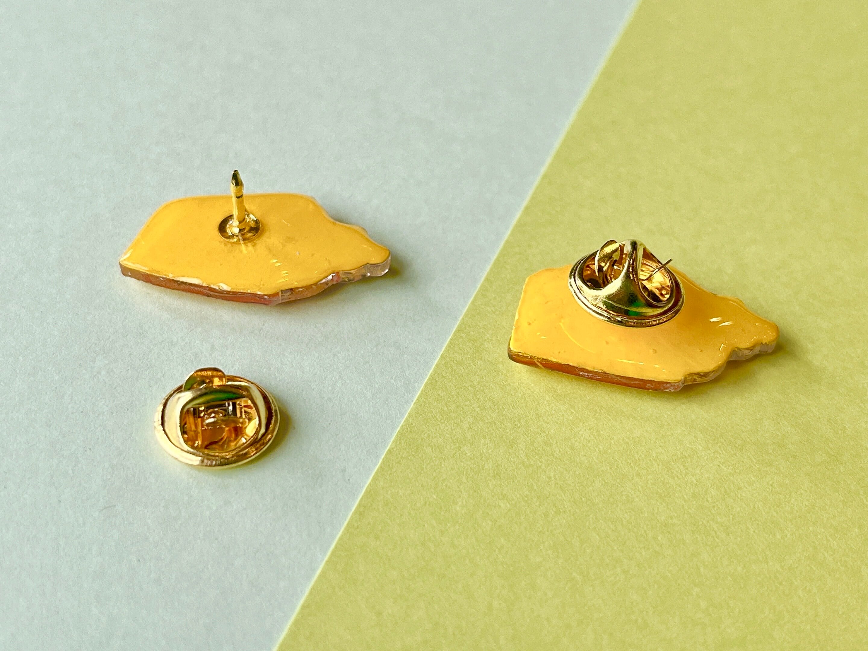 プラ板にコピックマルチライナー・色鉛筆で着彩、レジンで裏表をコーティングしています。